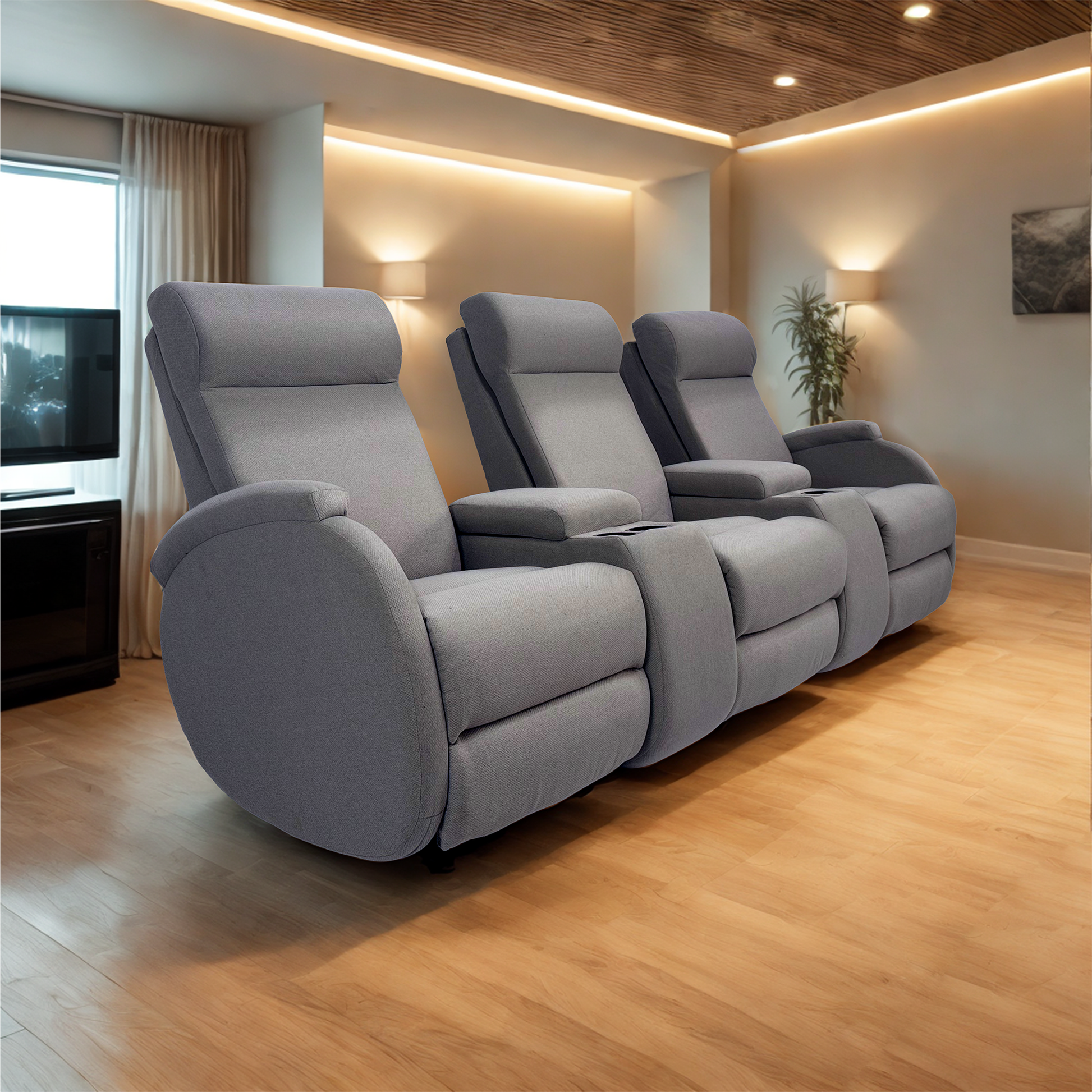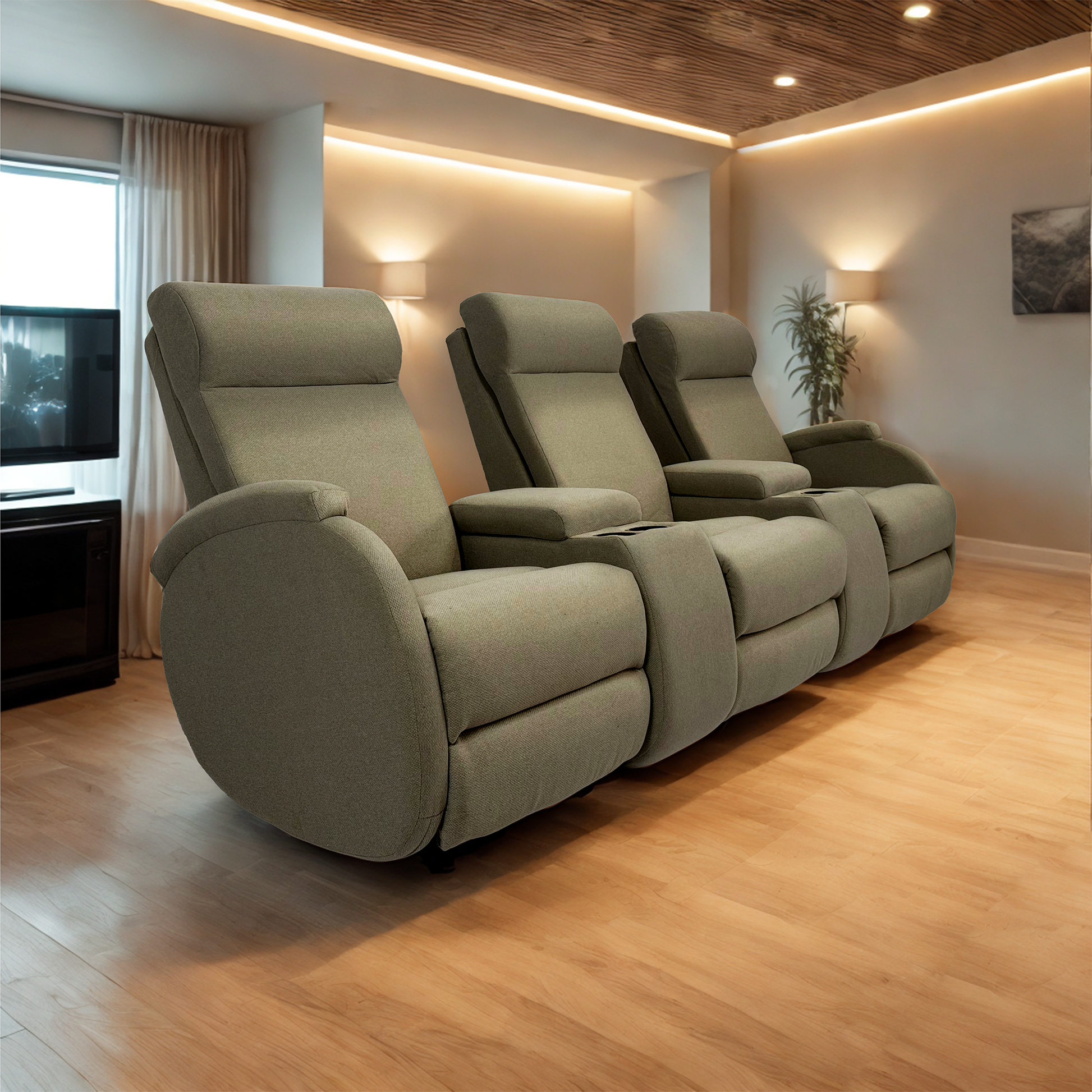 Disfruta de una experiencia de relajación incomparable con nuestro Sillón Reclinable Eléctrico Triple Con Consola. Con un estilo moderno y elegante, este sillón permite que tú y tus acompañantes se relajen al mismo tiempo en total comodidad. Con un sistema eléctrico avanzado que permite reclinar cada asiento de manera independiente, es ideal para quienes buscan compartir momentos de descanso sin sacrificar la comodidad individual. Este sillón cuenta con una consola integrada que incluye un espacio de almacenamiento, portavasos y enchufes de luz. Dirigido para aquellos que buscan comodidad, organización y eficiencia en un solo lugar.